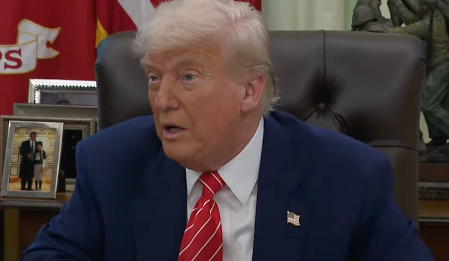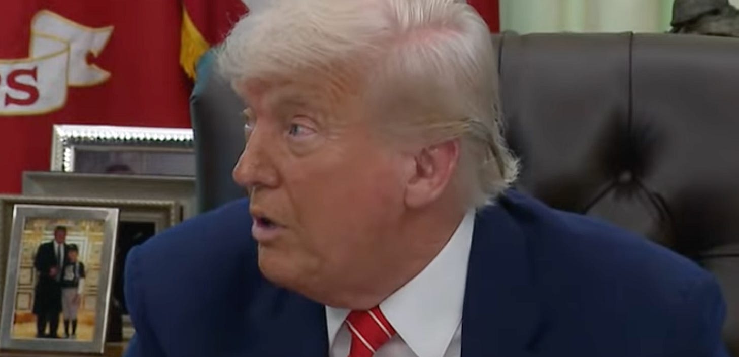 Asked about the Sean “Diddy” Combs trial and possibly pardoning him, Trump said Diddy “used to like me a lot” before veering off into stating that being the President of the United States is not a popularity contest. He also didn’t know he had taken an oath to defend the United States Constitution, so give him a break. After all, he said he might give Diddy one.