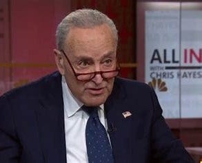 If we’re lucky, Chuck Schumer responds, looking at the press with his glasses hanging off the tip of his nose like he’s Mel Brooks’ 2000 Year Old Man sketch come to life.
