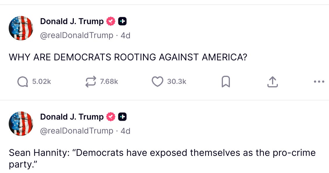 All amplified by a President and the richest pile of Apartheid blubber in the world, Elon Musk, tweeting out to the many tens of millions who follow this AI-infested doofus, “Democrats are the party of death.”