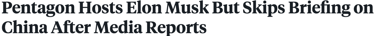 There are reasons for optimism, here’s a BIG ONE. The Pentagon was gonna give Elon Musk a briefing on top-secret war plans with China. INSANITY. Musk’s businesses have deep ties to China, especially Tesla’s gigafactory in Shanghai. This would be a massive conflict of interest to anyone except the crime syndicate running over government, for which everything has a price.