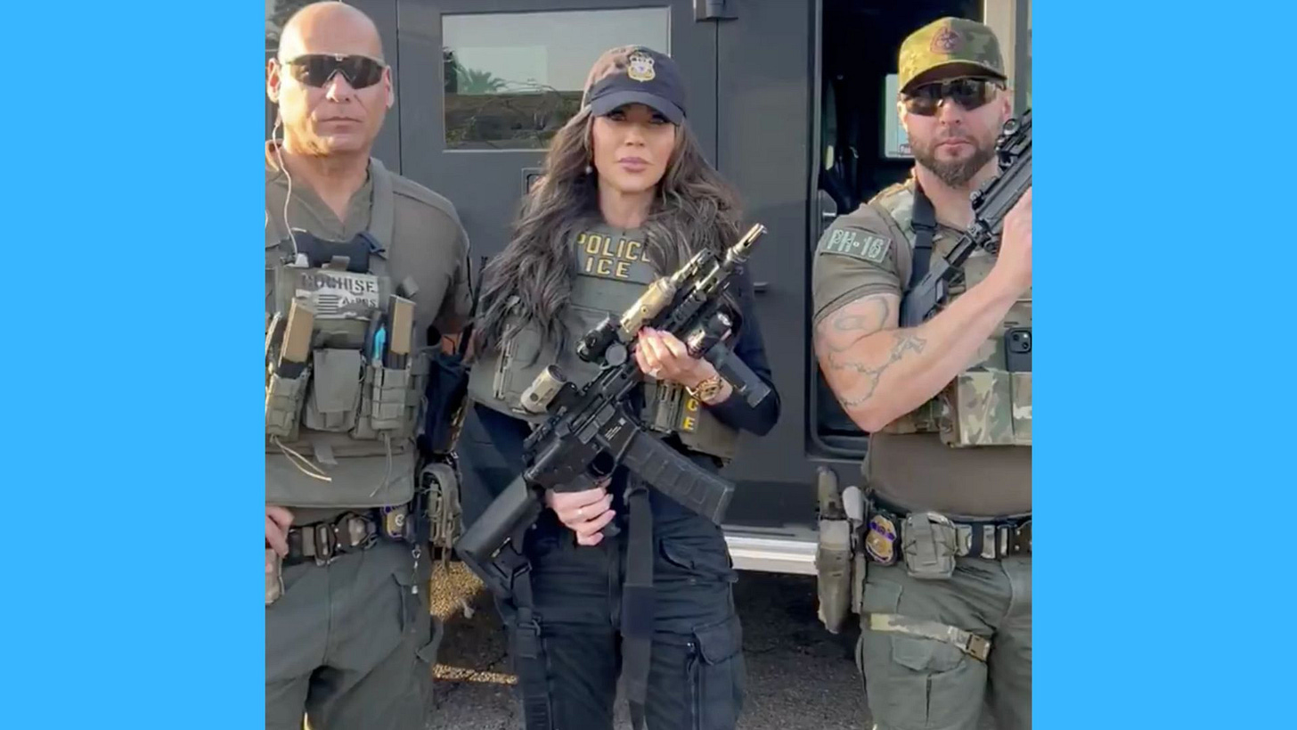 Kristi Noem represents the modern American disease in its most virulent form: moral vacancy wrapped in patriotic packaging. She mouths slogans about law and order while presiding over government tyranny.