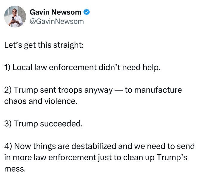 - Our friend, award winning reporter and author Brian Karem, has been covering the events in LA on the ground. He wrote about Trump’s actions there for us just yesterday and covered more of Trump’s maneuvers & malfeasance at his Substack, which you should read, and to which you should SUBSCRIBE!
