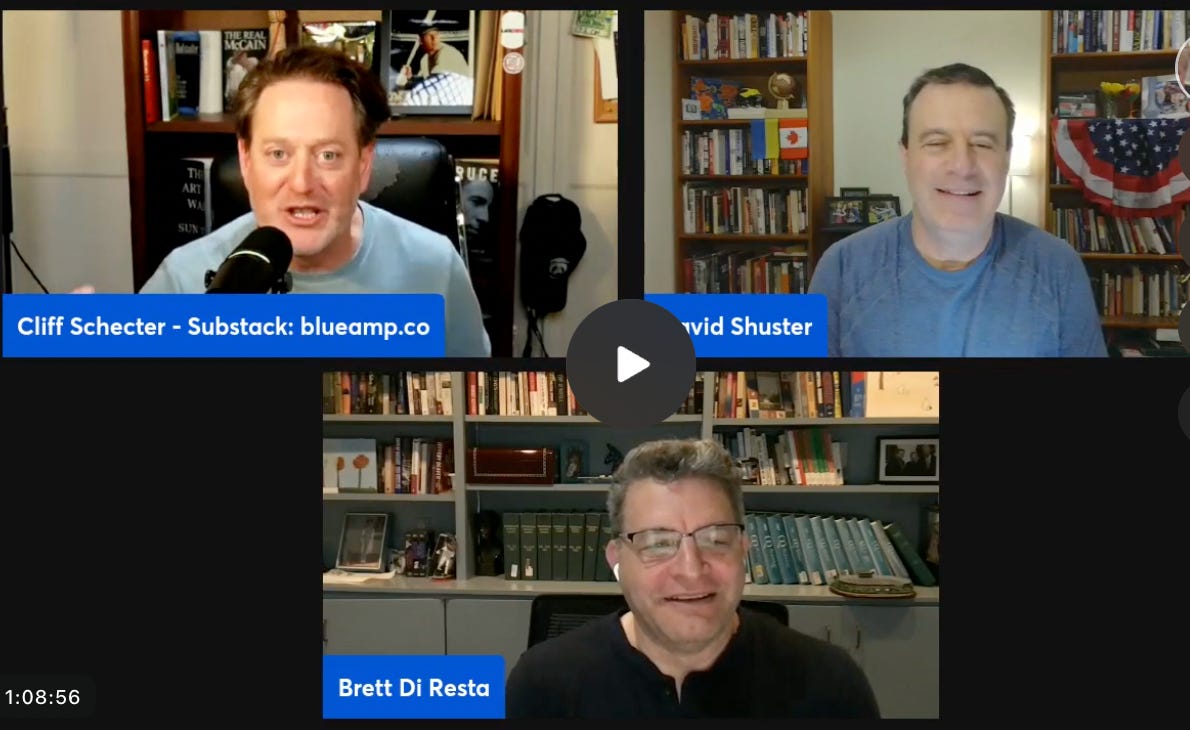 Cliff’s Note: Hey Ampers, this is the livestream/summary of a great convo with David Shuster, Dem oppo researcher & GW prof, Brett Di Resta, and myself. We didn’t share it last week b/c the Charlie Kirk news broke towards the end. Yet, what we discussed—from Epstein to Putin over Poland—is still incredibly relevant. So we’re sending it out now.