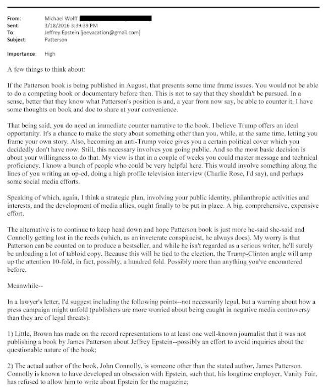 Great and insightful article. I too have/had a lot of questions about the tapes and Wolff’s bromance with Epstein. Hilarious that he adds the snarky part about Patterson not being a respected writer (Patterson is one of the highest-paid authors of all time, with a net worth estimated around $800 million, and Wolff's net worth is estimated around $20M). I’d say Patterson is a lot more respectable as a writer and as a person than Wolff.