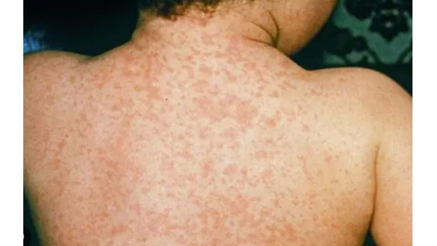 If you were there, officials are urging that you monitor symptoms and double check your vaccination status. Translation: if you were not vaccinated, enjoy the rash, fever, and possibly worse because nature is coming to collect its due.