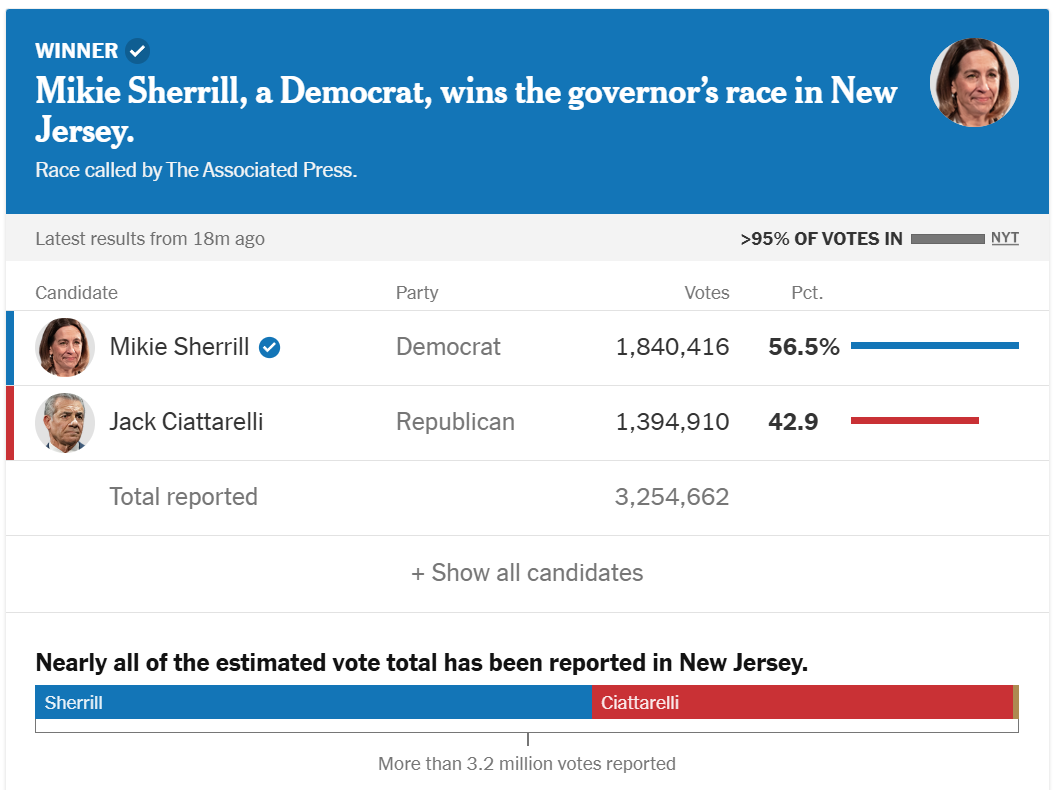 New Jersey’s Mikie Sherrill shatters expectations with a stunning 13-point victory, as Shuster skewers Fox’s polling acrobatics and the right’s refusal to accept math—or reality.