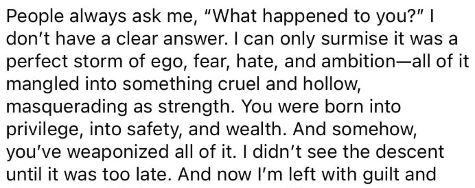 I hope she’s found some peace in the intervening months—there’s nothing she could’ve ever done to “fix” this monster.