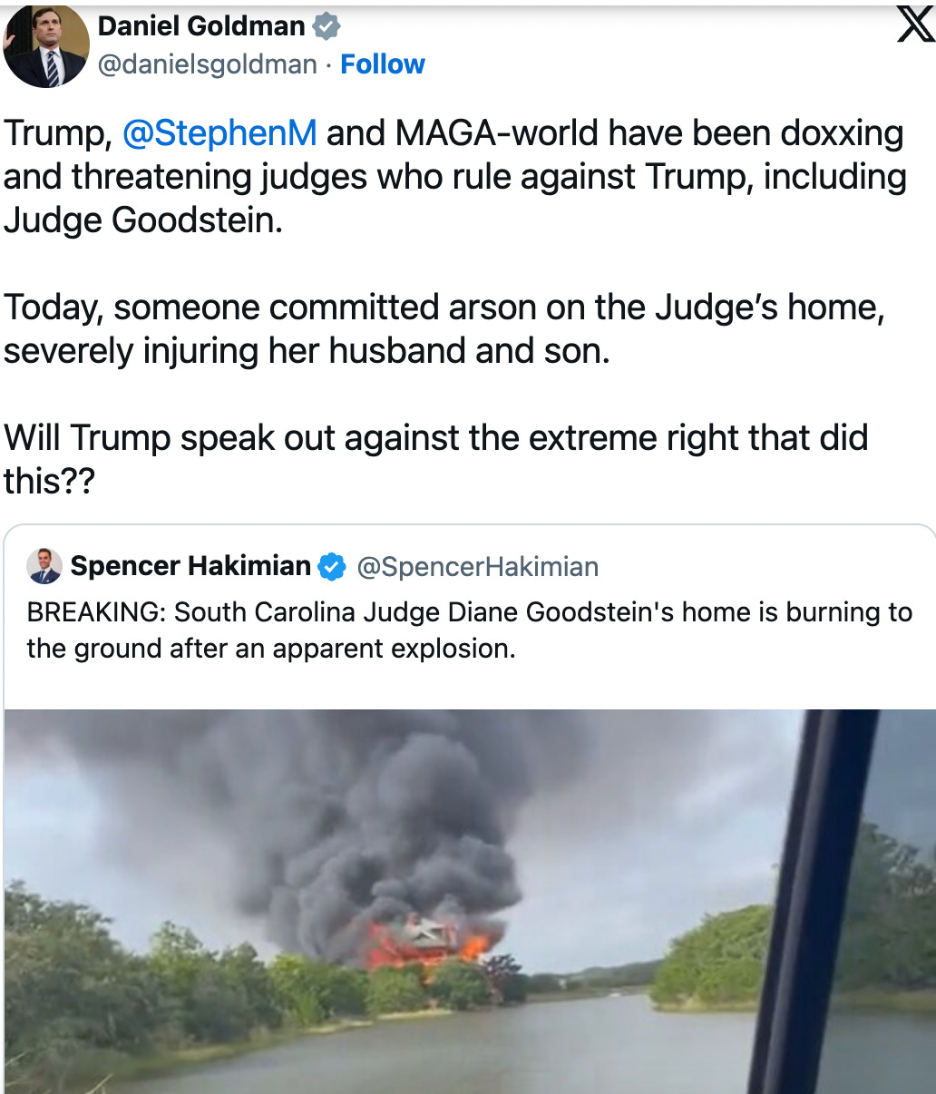 He rightly took the kind of rhetoric shared by Miller and his half-wit allies of the Lollipop Guild to task. Especially after the alleged arson at Circuit Court Judge Diane Goodstein’s home on Edisto Island in South Carolina.