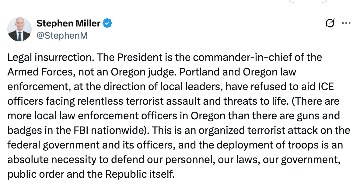 This especially includes judges—most of whom have been appointed by Republicans—doing their jobs. Most recently, he posted this about a judge rightfully rejecting President Adult Diaper With Tang-For-A-Face’s attempt to take over Portland’s National Guard: