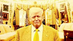 The office of the presidency now resembles the worst after-party you skipped because you had to work in the morning. Walls turned golden, moldings fattened, sign slapped beside the “Oval Office” label so no one misses the bling, as Americans watch their food and health care vanish, their workers deported and their jobs disappear.