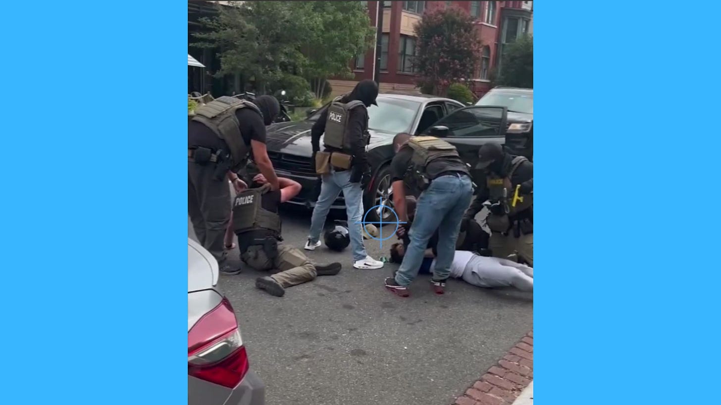 In downtown Washington—already increasingly authoritarian due to Trump’s calling in the National Guard—D.C. I.C.E. agents recently tackled and assaulted an Uber Eats driver just doing a delivery. The feds pulled him from his moped and threw him to the street.