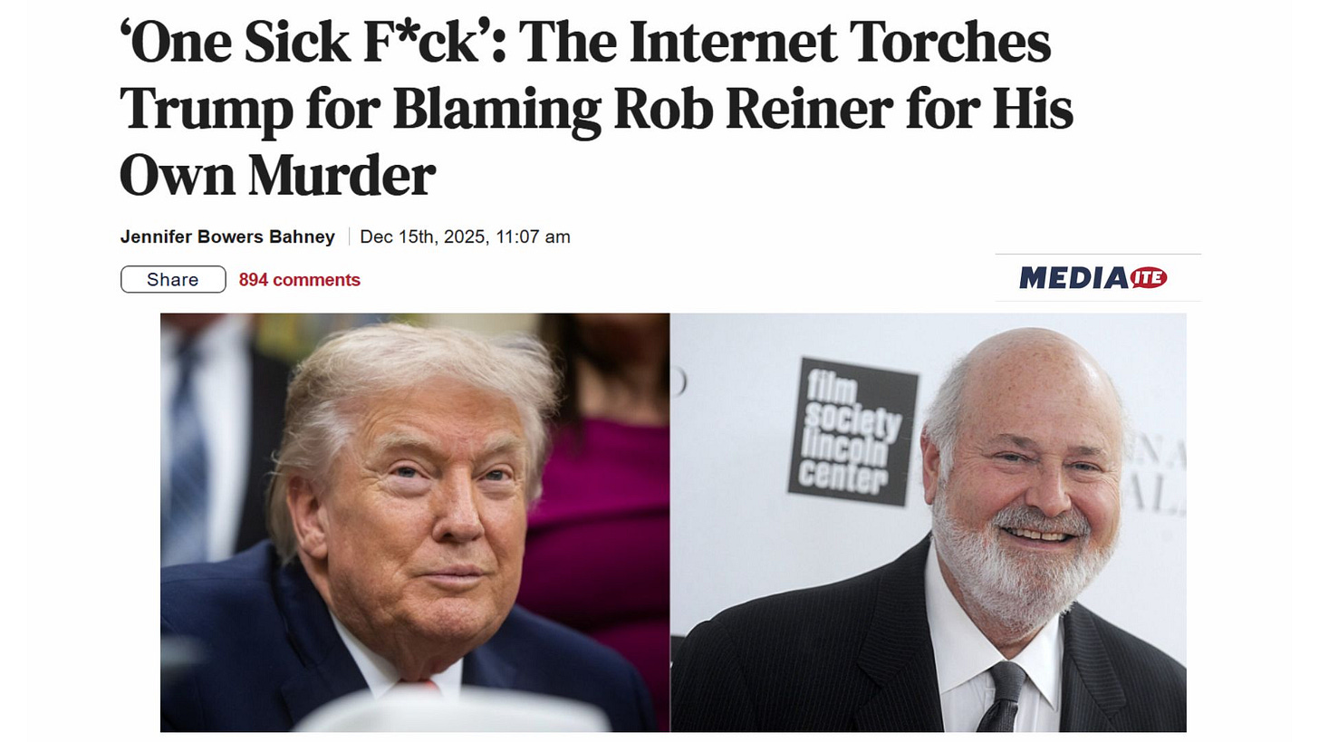 Instead, Trump delivered a social media rant that managed to make his previous shocking indecencies look almost quaint. Trump blamed Reiner for his own murder. Trump produced a sneering, gloating monologue on Truth Social that blasted Reiner, a progressive activist, for having the temerity to oppose Trump while alive.