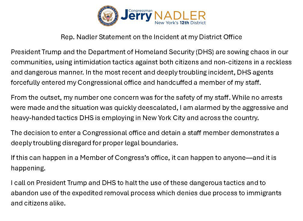 I also can’t fathom this response from the actual Congressman whose staffer was assaulted..I’ve always liked Jerry Nadler, I’ve met him a few times. But this is not even close to meeting this terrifying moment: