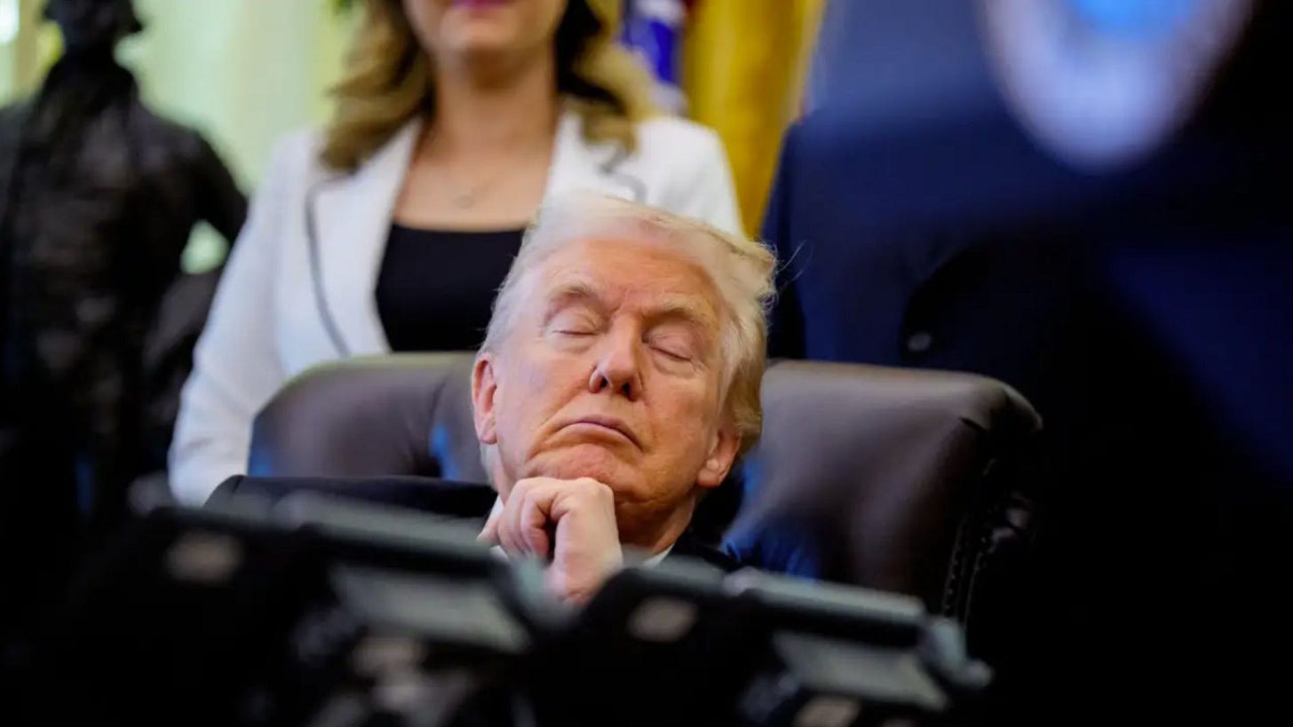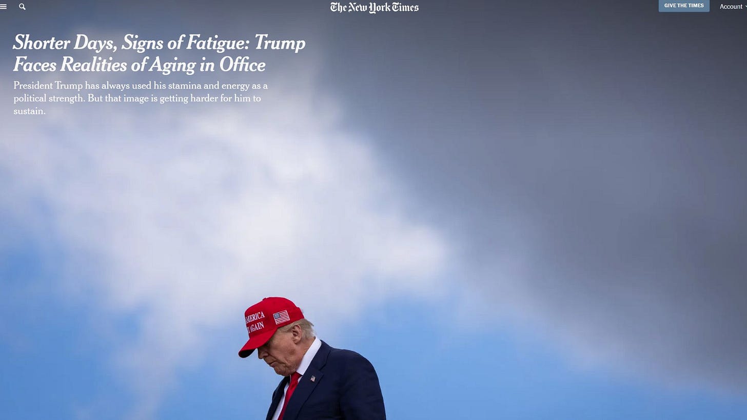This is a civic emergency. Because the danger is not that the President is aging — all men age. The danger is that the Presidency itself is aging under Trump and has been reduced to a twilight institution, limping through the motions, while the current occupant rants, naps, fumes, and forgets.