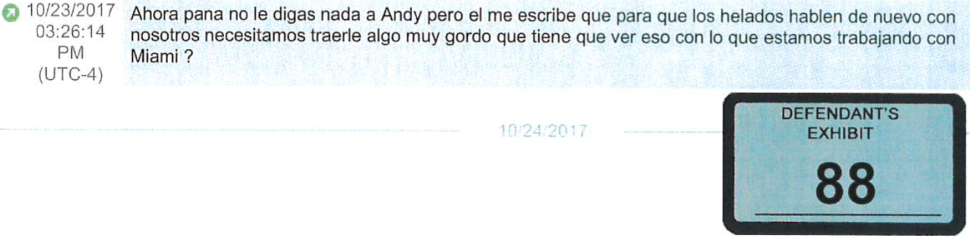 In a 2017 text exchange revealed in that case, Rodil used the Spanish word “gordo,” meaning fat. He wrote, “[S]o that the ice creams talk to us again we need to bring something very big to him.”