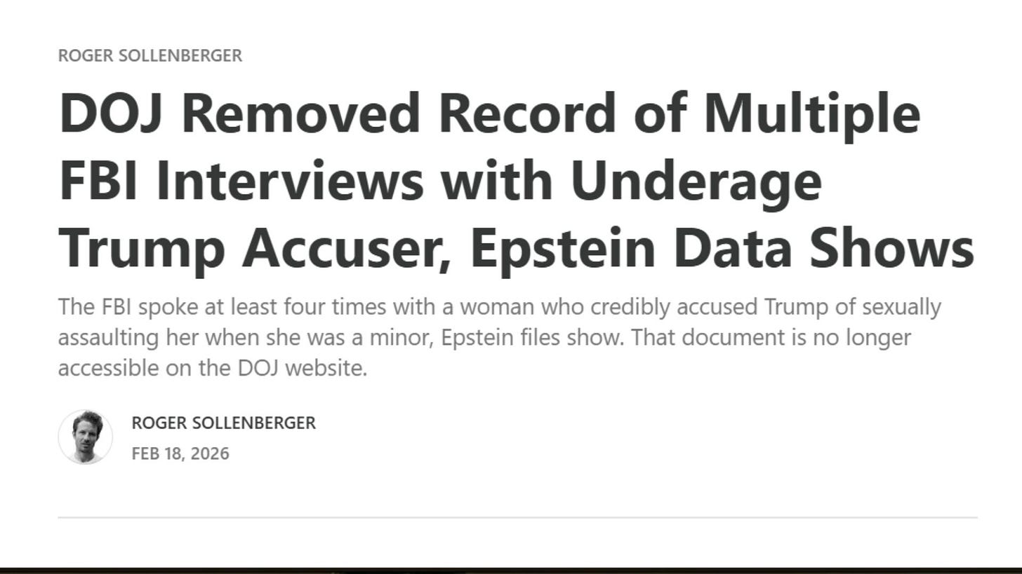 This is not a close call. It is not a matter for delicate parsing. When credible allegations of child sexual assault against a sitting President produce multiple FBI interviews—and the summaries of those interviews vanish while his Attorney General controls their release—the stench is not subtle. It is overpowering.