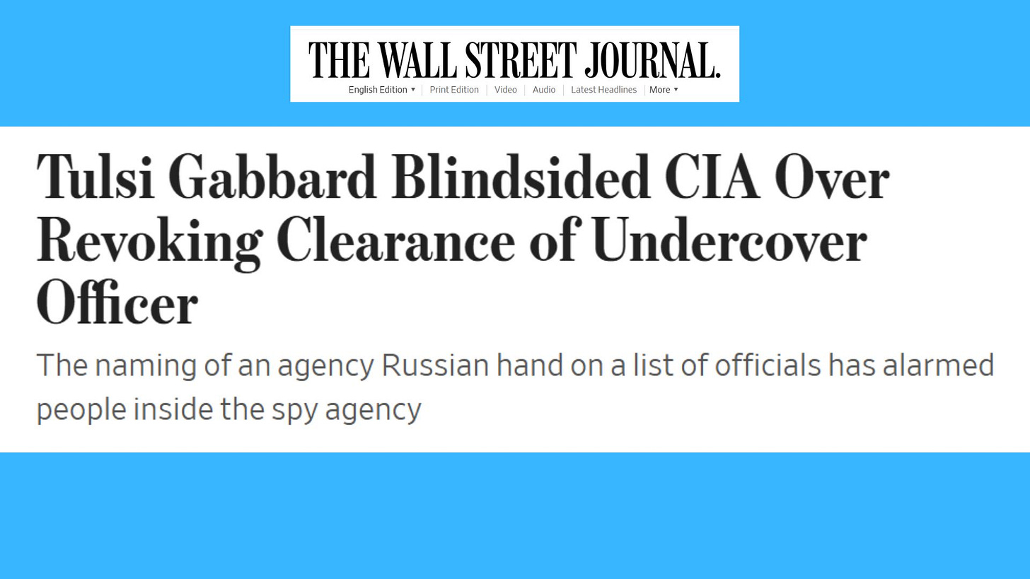 As first reported by the Wall Street Journal, Ms. Gabbard followed orders from President Dementia Don Trump and revoked the security clearances of 37 intelligence officials who had committed the cardinal sin of investigating Russian election interference.