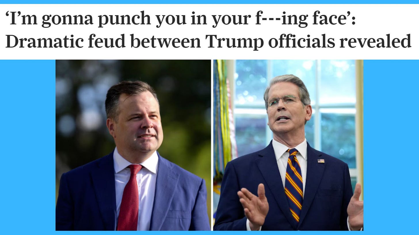 No, Bessent, financial genius and celebrated MAGA flunkey, nearly threw hands over playground whispers passed along to His Most Detested Orange Majesty.