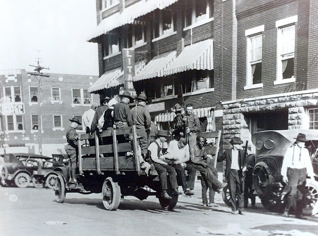 The Tulsa Race Massacre, or “race riot” took place between May 31st and June 1st, 1921, in the Greenwood District in Tulsa, Oklahoma, when white supremacist residents—some of whom worked for the police departments and city government—attacked black residents and destroyed their homes and businesses. When all was said and done, 36 people were dead, 800 were injured, 6000 black residents were displaced, and 35 square blocks were completely gone. A follow-up investigation in 2001 by the Tulsa Reparations Coalition estimated there could have been as many as 300 killed, due to hurried, undocumented burials.