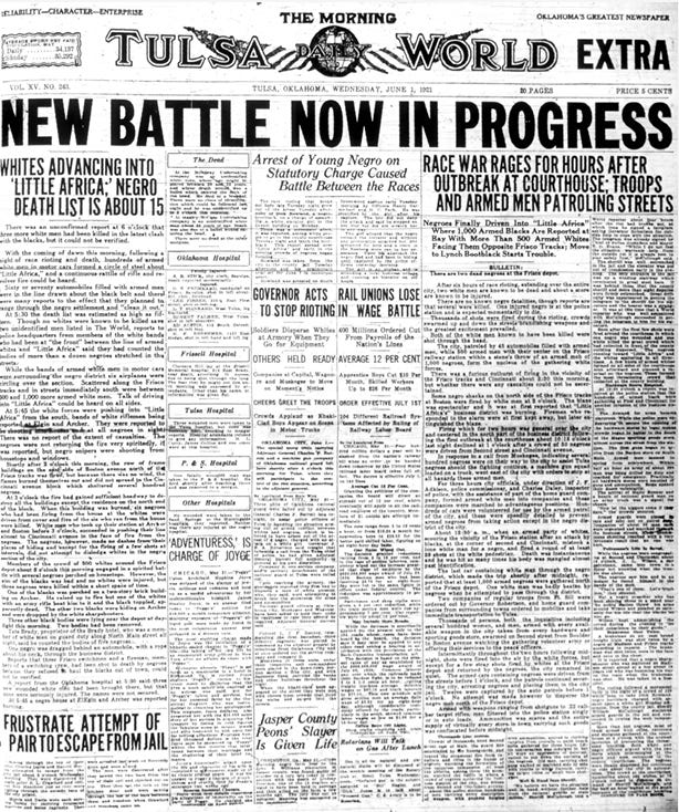 The Morning Tulsa Daily World listed the leader of the black rioters, Will Robinson, as “a dope peddler and all-around bad negro,” and said the rest of them were “former servicemen who had an exaggerated idea of their importance... They did not belong here, had no regular employment, and were simply a floating element with seemingly no ambition in life but to foment trouble.”